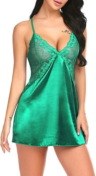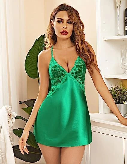 Women satin nightgown, V neck babydoll, sexy lace lingerie set, halter chemise, spaghetti strap sleepwear is a wonderful gift for yourself or friends as sleepwear, nightwear, loungwear, pajamas. Perfect for Christmas party, Valentine’s Day, date nights, wedding nights, honeymoon nights, role play and lingerie party